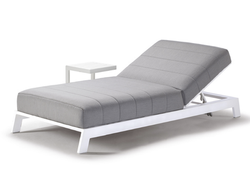 LETTINO CON STRUTTURA IN ALLUMINIO E GOMMA DRENANTE “FAST DRY FOAM”. RIVESTIMENTO IN TESSUTO SUNBRELLA.PER USO ESTERNO.