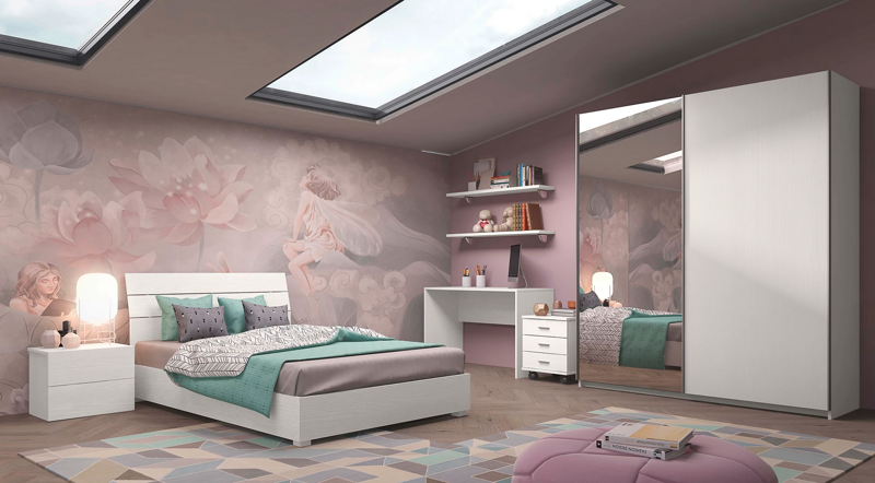 Questa cameretta unisce eleganza e funzionalità, perfetta per chi cerca un arredamento versatile e raffinato.