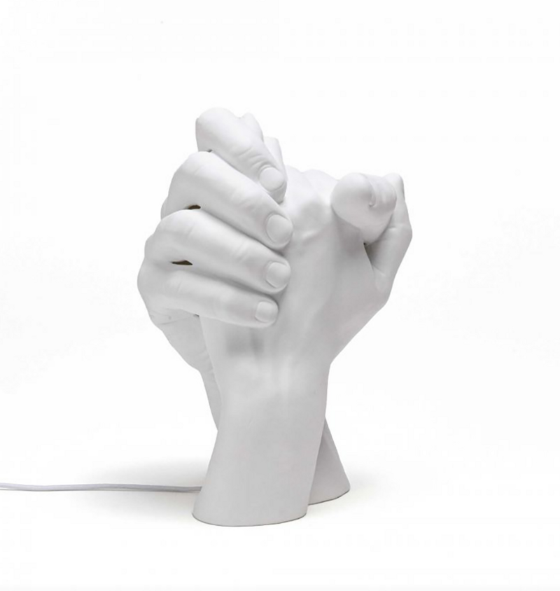 La lampada da tavolo a LED realizzata in bellissima porcellana ed ispirata al morbido e caldo intreccio di due mani che si uniscono.