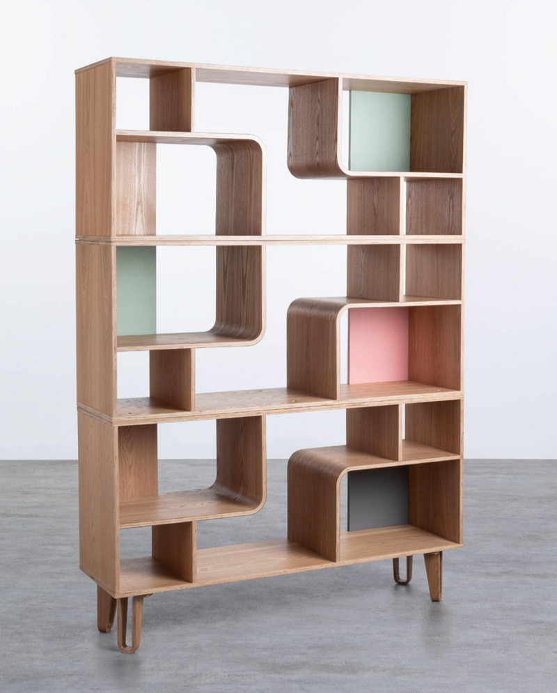 La libreria Art è il complemento ideale per riporre qualsiasi cosa desideriate e aggiungere un tocco distintivo e personale alla vostra casa. Realizzata in Compensato di Frassino. Integra divisori irregolari e ripiani con angoli curvi che spezzano la rigidità tradizionale, creando una composizione visiva accattivante. Questa libreria è perfetta per organizzare libri, oggetti decorativi o oggetti personali, ideale per soggiorni, sale da pranzo e uffici. Per la pulizia, utilizzare un panno, evitando l'uso di prodotti chimici.