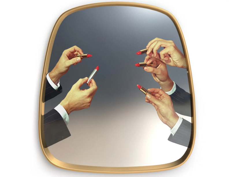 Lip è uno specchio da parete con cornice. Fa parte di una serie di specchi decorati con alcune delle immagini più irriverenti firmate TOILETPAPER. Disponibile in 2 dimensioni, le 6 grafiche daranno quel tocco civettuolo alla parete, rendendo l'utente protagonista del loro mondo straordinario e folle.