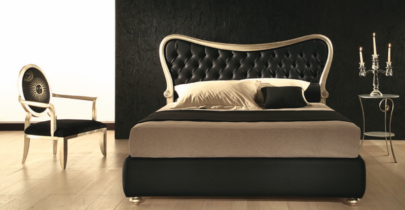 Letto tessile con cornice finitura foglia argento mecca - Versione box contenitore CASSIC