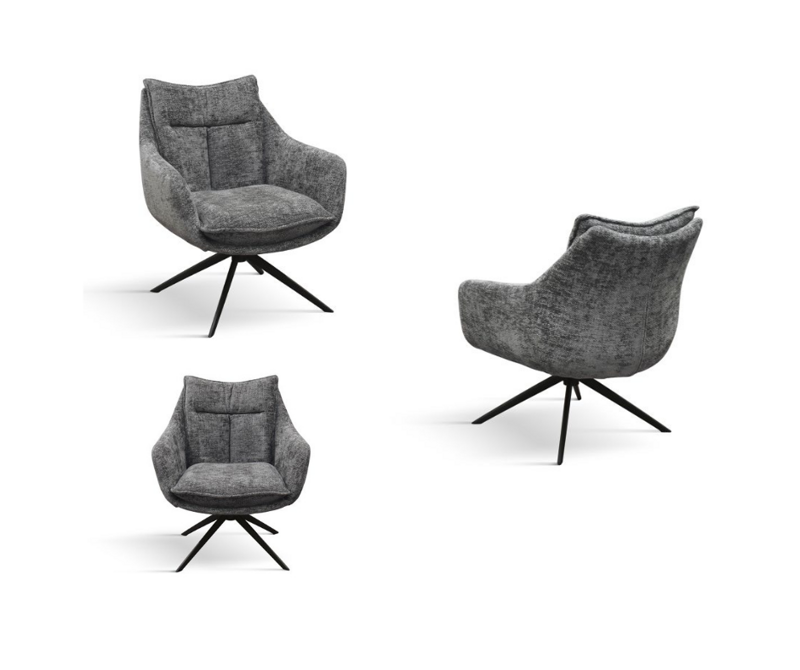 Poltrona struttura in metallo imbottita in tessuto grigio. Armchair structure in metal upholstered in gray fabric.