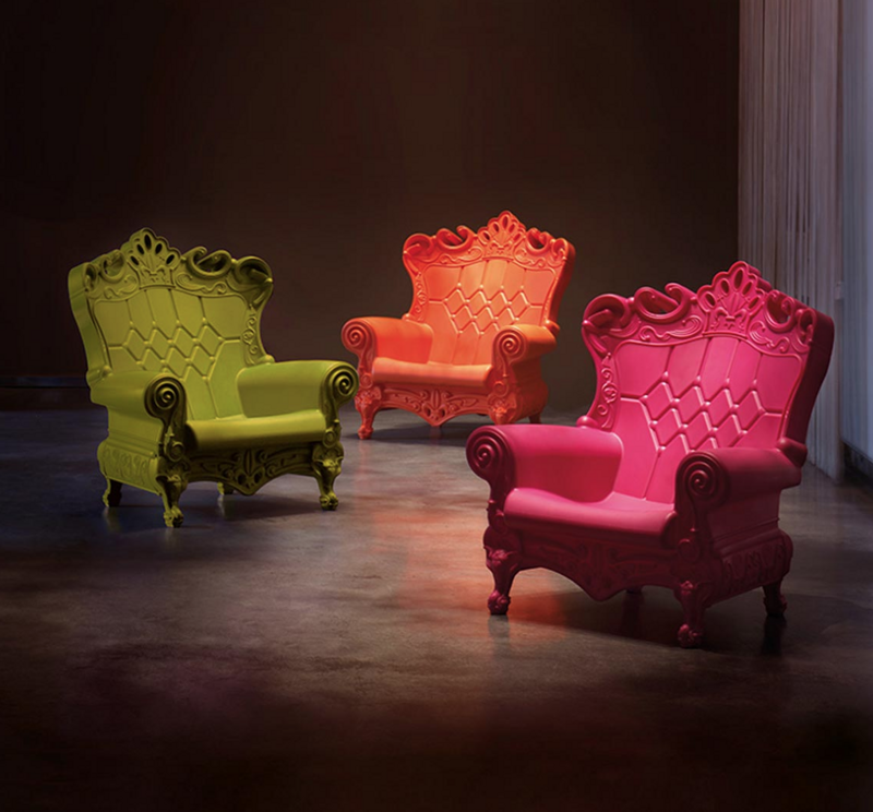 Queen Of Love è la poltrona di design, appartenente alla collezione Design Of Love ispirata ad uno stile prettamente Rococò. Elegante e signorile, ironica e sprezzante ma sostanzialmente unica e particolare, la Queen of Love non è soltanto una seduta lussuosa dallo stile barocco, ma anche un articolo dal design irresistibile che si adatta ad ogni tipo di ambiente sia outdoor che indoor come soggiorni, negozi, ristoranti e uffici, nonché ideale per il contract. Come tutta la collezione di prodotti , è realizzata in polietilene lineare riciclabile stabilizzato UV tramite la tecnologia dello stampaggio rotazionale. Resistente agli agenti atmosferici e semplice da pulire.