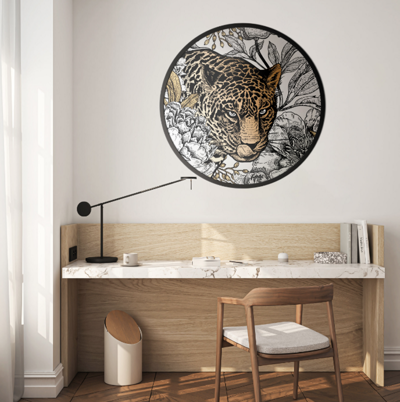 • Soggetto “leopardo”: l’immagine del leopardo aggiunge un tocco di forza e natura selvaggia, perfetto per chi vuole un elemento decorativo che attiri l’attenzione.