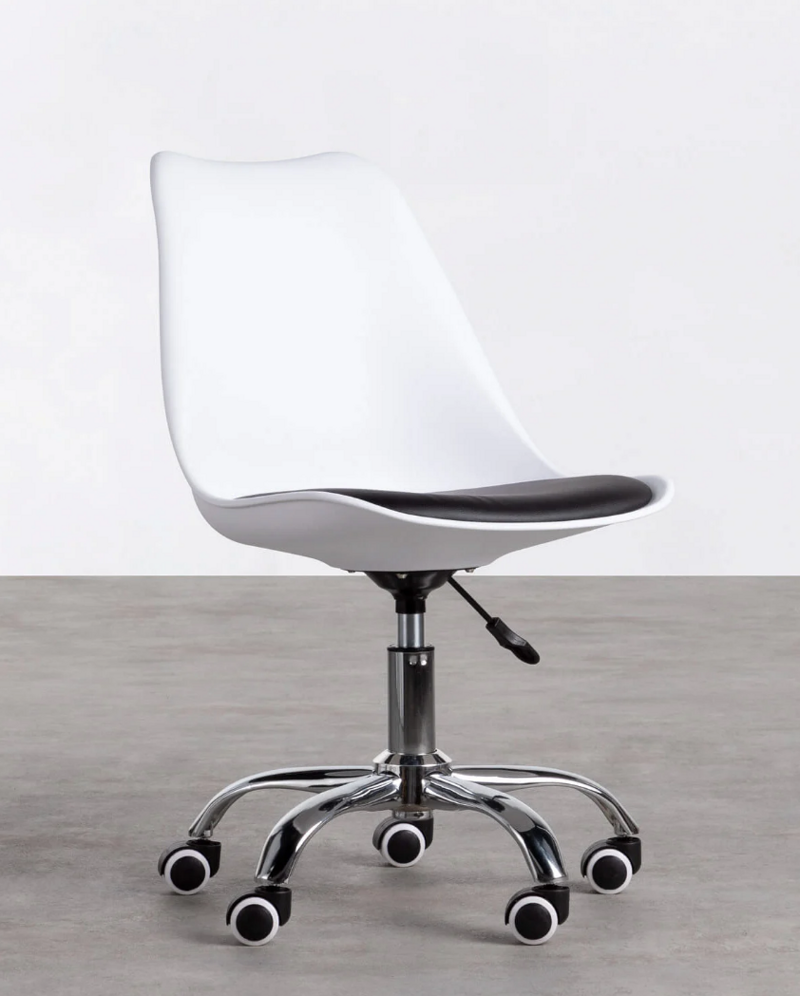 Sedia da Ufficio Frek è di design attuale per l'ufficio. Sedile in plastica polipropilene. Include cuscino rivestito in similpelle, non rimovibile. Larghezza totale della base con ruote: 52 cm. Larghezza totale della seduta 48 cm. Base in metallo laccato con 5 ruote. La sedia da ufficio Freya Scriva offre un design moderno e molto originale. Ideale per ambienti minimalisti, dal tocco futuristico o pop. Le gambe sono realizzate in metallo e la seduta in polipropilene. Include il cuscino rivestito in similpelle e con imbottitura in schiuma ad alta densità per un maggiore comfort. La base termina con 5 ruote per facilitare lo spostamento della sedia e offrire all'utente una libertà di movimento imbattibile. Controllare disponibilità, chiamando.