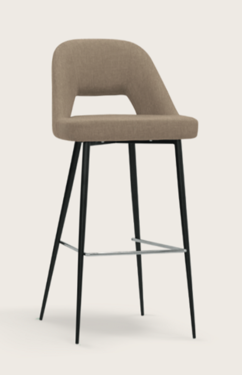 Struttura in metallo verniciato, seduta e schienale imbottiti,