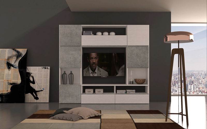 da 25 mm di spessore garantisce robustezza e durata nel tempo, mentre le ante con gola maniglia e le cerniere ammortizzate offrono un'apertura fluida e silenziosa. I cassetti già assemblati con guide ammortizzate assicurano una chiusura dolce e sicura, rendendo l'utilizzo quotidiano un vero piacere. Al centro, uno spazio ampio è pensato appositamente per il televisore, trasformando questo soggiorno in un perfetto punto focale della zona living. Il soggiorno Arte 01 è disponibile in una vasta gamma di combinazioni:Frontali e ante semi gola: Quercia e frassino Gesso, Cemento e frassino Gesso , Quercia, Cemento Struttura Frassino Gesso. Queste opzioni permettono di adattare il mobile allo stile del tuo ambiente, rendendolo perfetto sia per interni classici che moderni. Dimensioni: Larghezza 242,5 cm. Altezza 208 cm. Profondità 45 cm. Un piccolo Bijoux di Design. Il soggiorno Arte 01 è più di un semplice mobile: è un gioiello di design che unisce funzionalità e stile. Le ante semi gola conferiscono in tocco di raffinatezza , mentre i due ampi cassettoni offrono spazio sufficiente per organizzare al meglio gli oggetti della casa. la versione in Frassino gesso e cemento dona un look moderno e sofisticato, mantenendo un'eleganza senza tempo. Rendi unico il tup living con il soggiorno Arte 01- dove tradizione e design si incontrano.