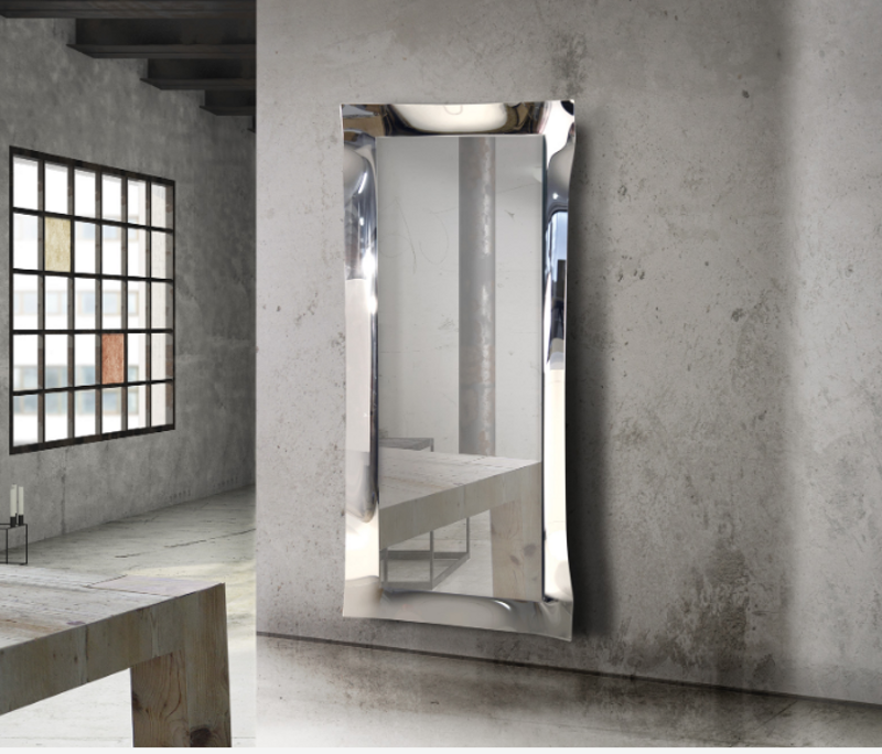 Elegante e raffinata specchiera rettangolare design moderna con cornice ondulata effetto argento lucido in vetro. Può essere utilizzata sia in posizione verticale che in posizione orizzontale. Prodotto italiano. Misure:170×70
